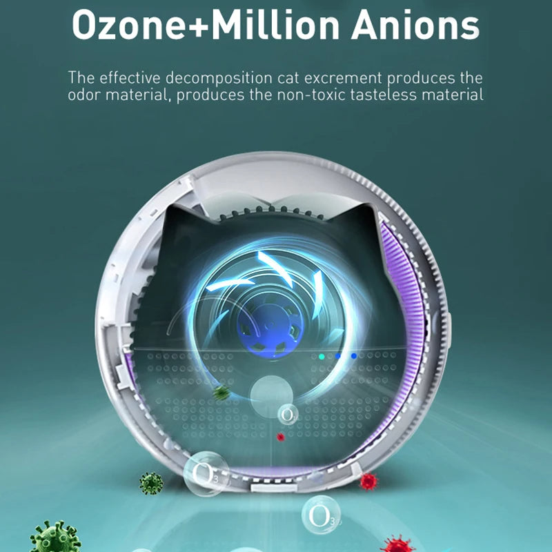 The Smart Pet Air Purifier is a revolutionary device that elevates pet care to a new level. This advanced air purifier combines ozone and negative ion technologies to effectively neutralize and decompose odors from cat litter or dog houses. It operates with 24/7 intelligent monitoring, activating sterilization and deodorization every 20 minutes to ensure a consistently fresh environment. The device's high-sensitivity bio-sensing system detects your pet's presence, ensuring efficient and timely odor control. Featuring multiple air outlet holes and an internal fan, it quickly disperses ozone for rapid and thorough odor purification. Impressively, it achieves 99.99% efficiency in sterilizing pet areas, all without using irritating fragrances or consumables, making it a safe, effective, and low-maintenance solution for managing pet odors.